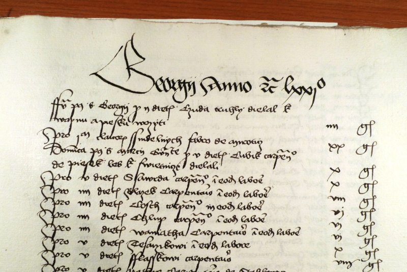 Zvíkovský stavební účet 1471. Georgii anno etc. LXXIo. Překlad z latiny: O [svatém] Jiří atd. [14]71. V tomto účtu je zapsána odměna pro Oneše a Jana z Biliny za práci na Zvíkově.