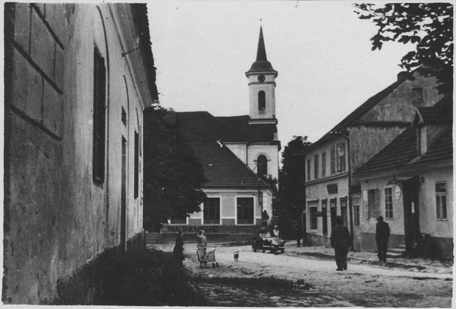 Z tohoto obrázku je vidět, že budova bývalého pivovaru byla dost vysoká. Takže zleva je na záběru bývalý pivovar (do roku 1939 zde byla kovárna), před kostelem hospoda „Na panské“, dále hospoda a obchod „U Suchanů“ a zcela vpravo pošta (bývalá škola).